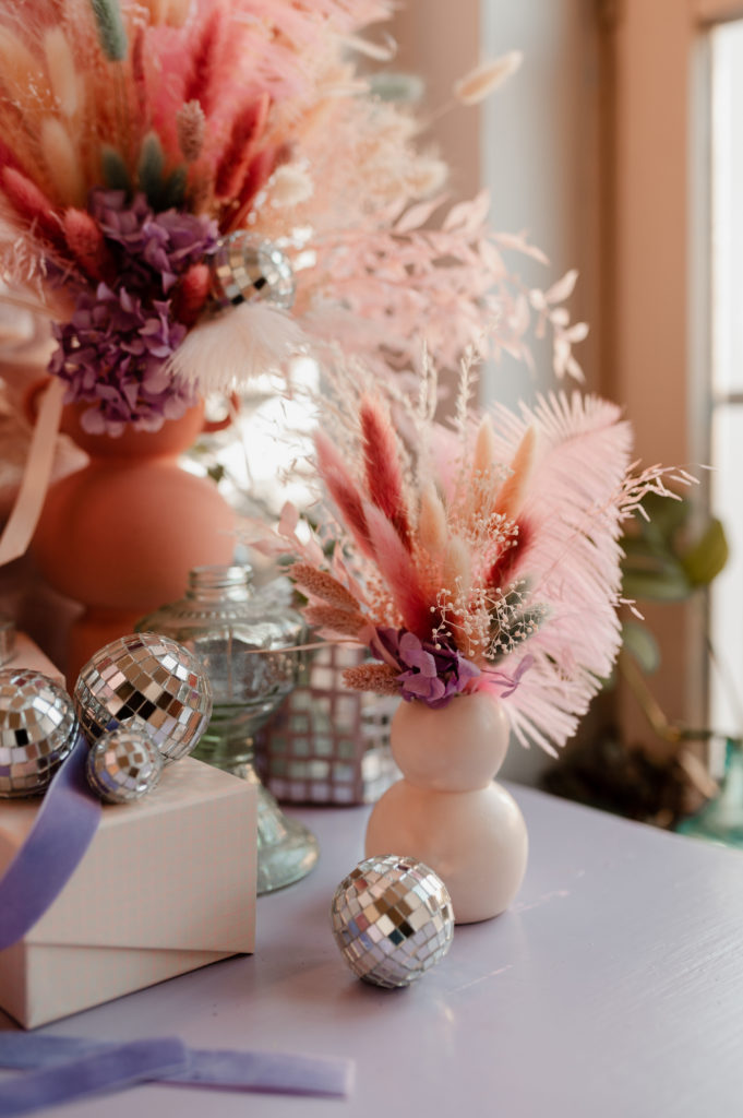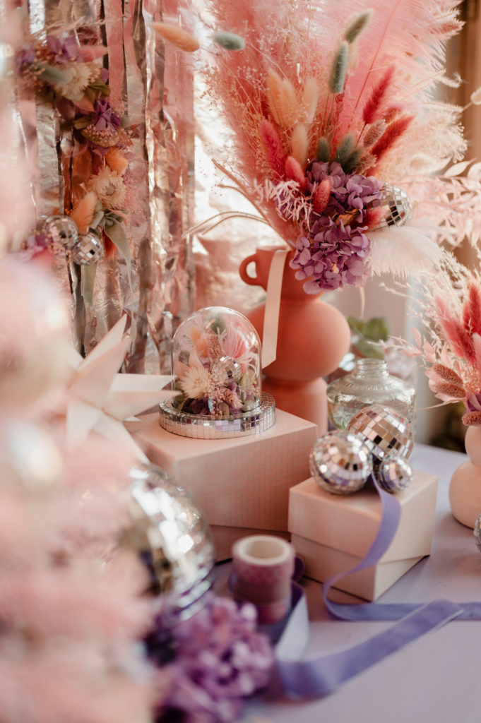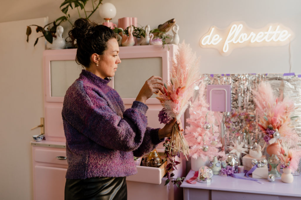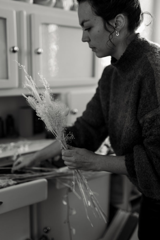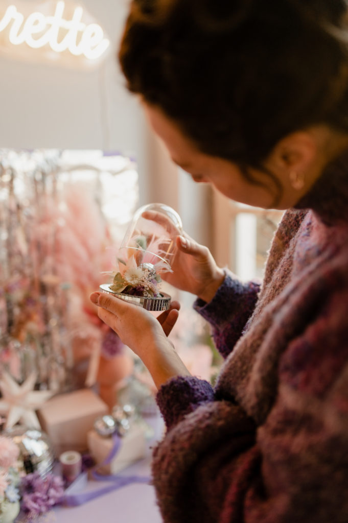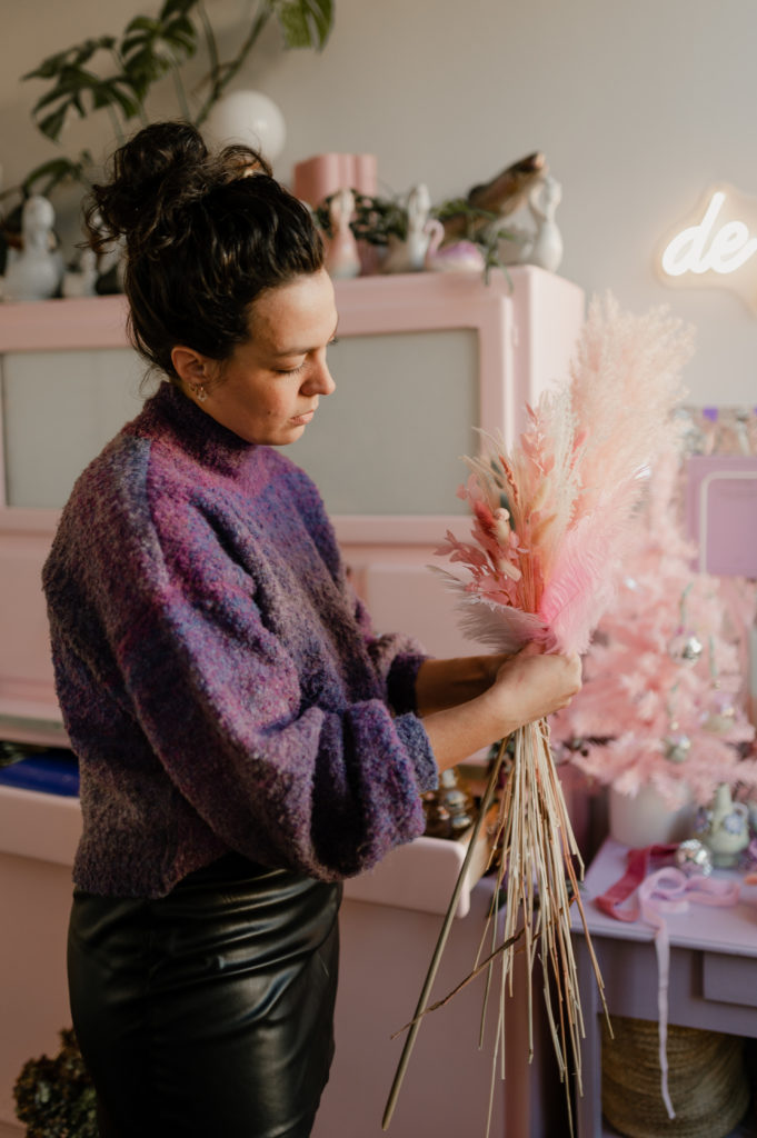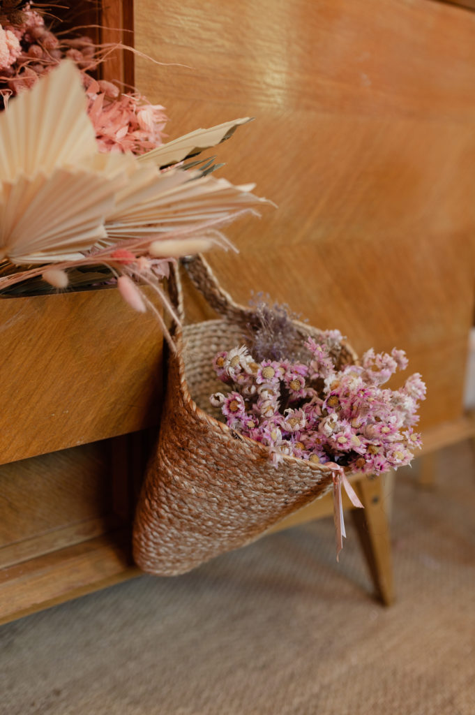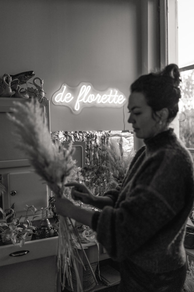 Une boutique colorée, où se mêlent fleurs fraiches soigneusement sélectionnées (de saison et locales, tout ce qu’on aime) et fleurs séchées délicatement disposées sur des meubles chinés.