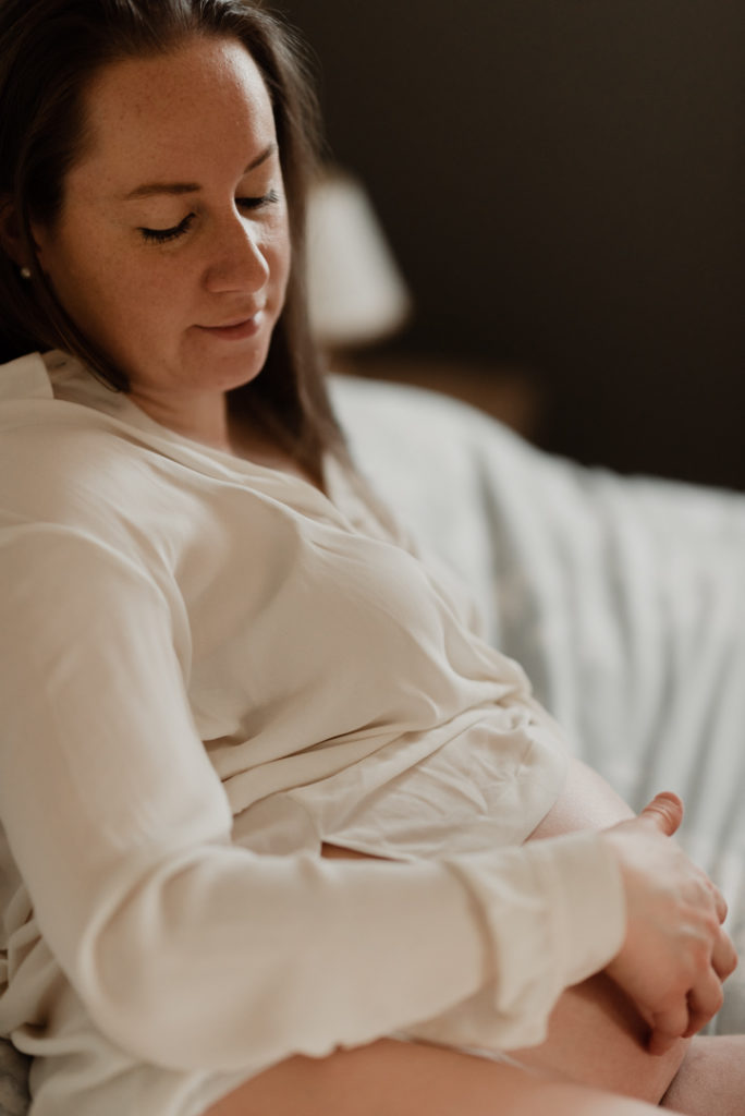 Une séance grossesse cocooning à la maison.