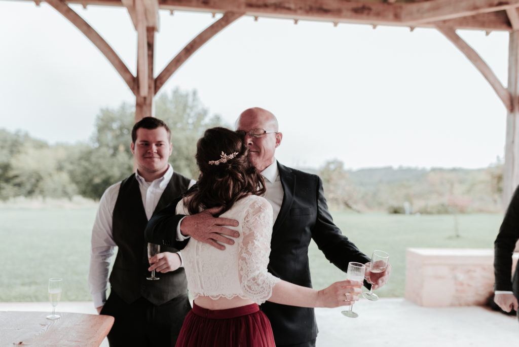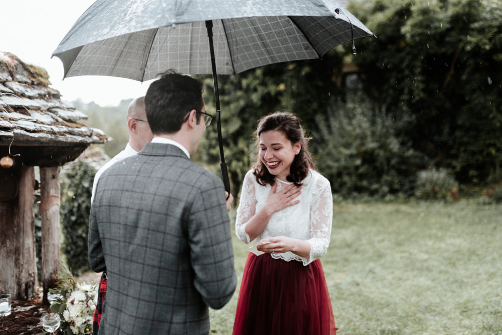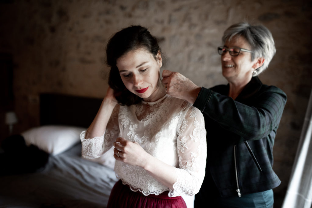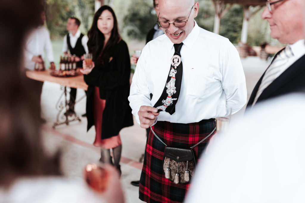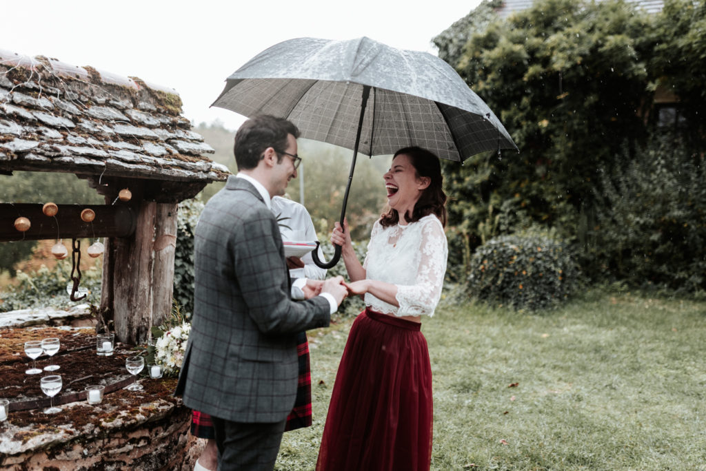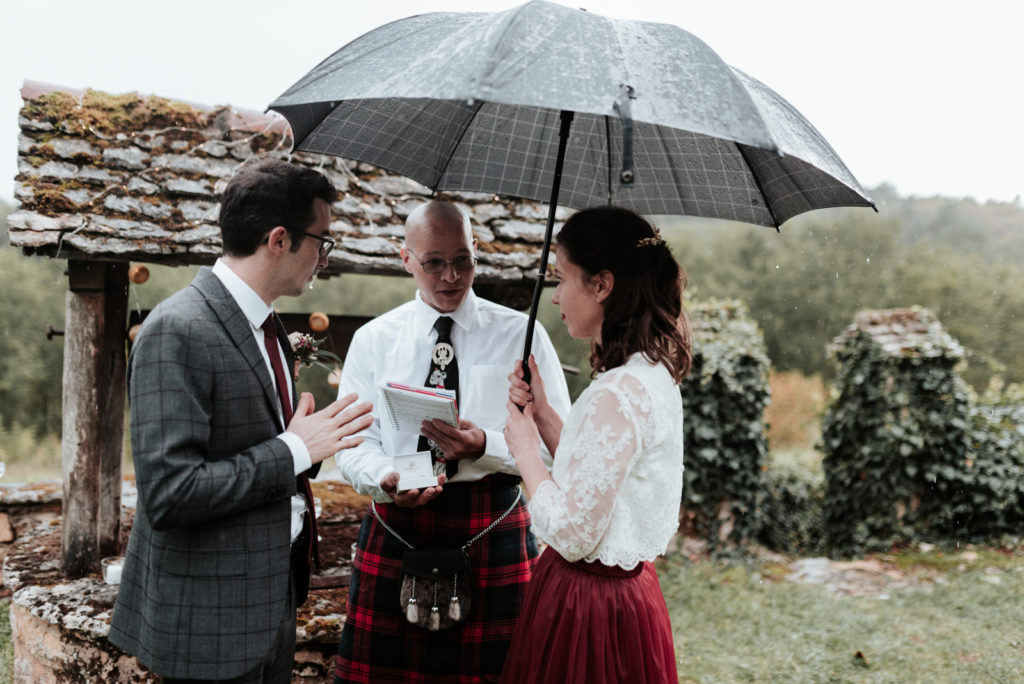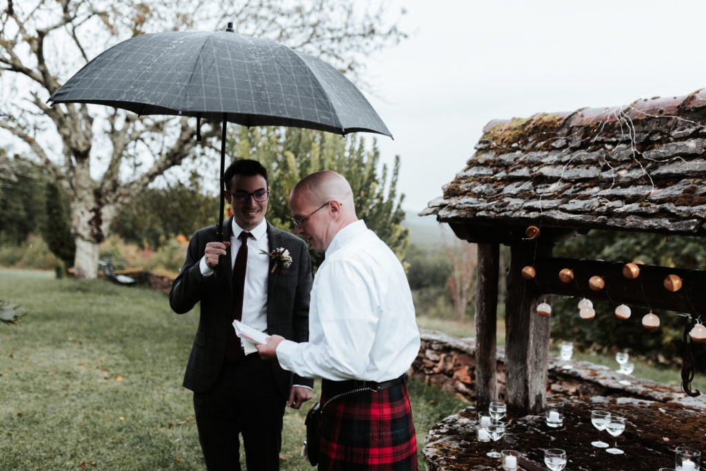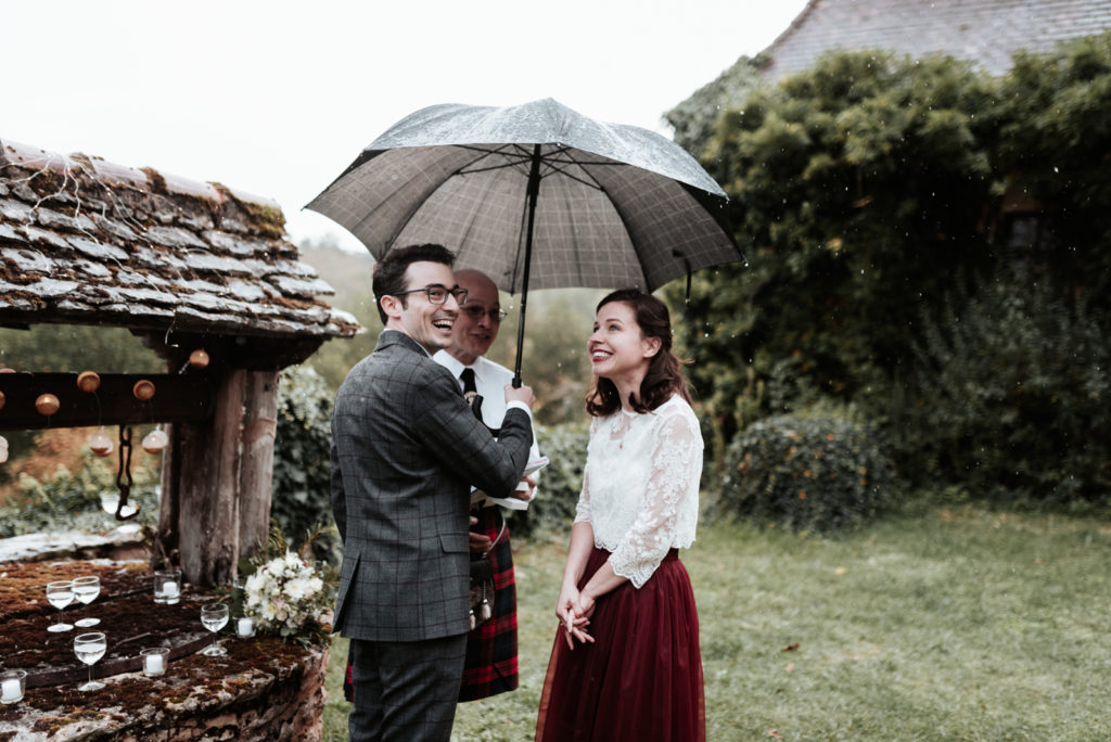 Ils ont souhaité célébrer ce bel évènement en toute intimité, entourés de leur famille proche ainsi que de leurs meilleurs amis, pour certains venus des Etats-Unis pour l’occasion puisque Caitlyn est texanne ! Un mariage franco-texan en Dordogne, multi-culturel puisque la cérémonie laïque était aux couleurs de l’Ecosse !